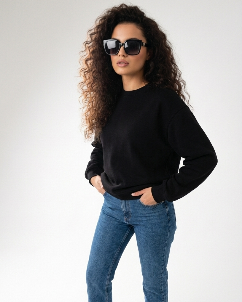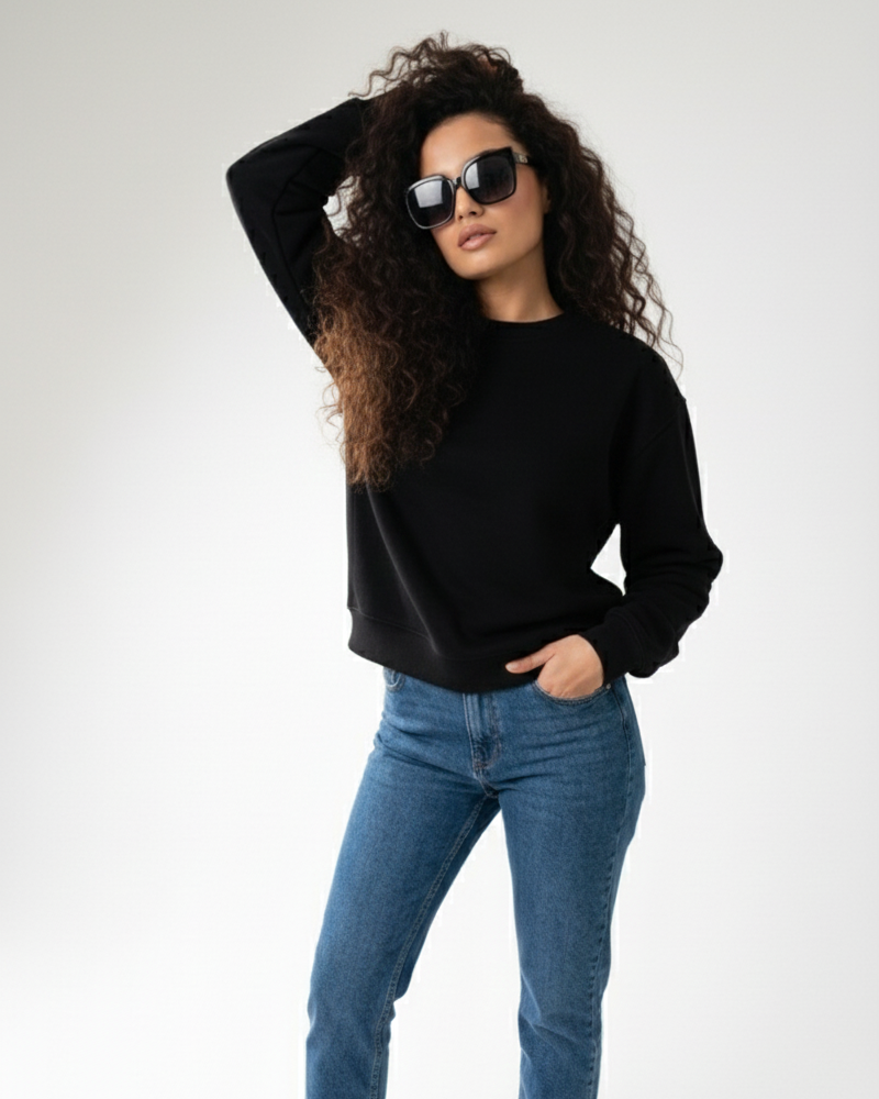 Pure Cotton Crewneck - Black Sweat-Shirt